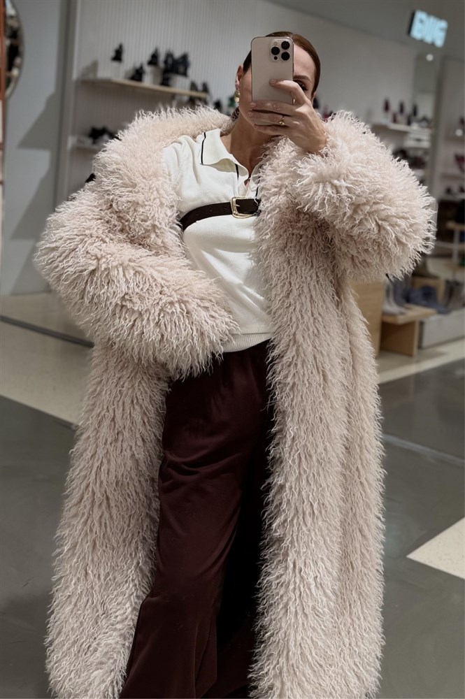 Шуба «Лама» — настоящее воплощение зимнего уюта. Её пушистая текстура привлекает внимание и придаёт образу элегантность. Светлый оттенок добавляет легкости, а свободный крой позволяет сочетать шубу с любыми комплектами — от повседневных вариантов до более нарядных ансамблей. Это идеальный выбор для холодного времени года, когда хочется окутать себя комфортом, не жертвуя при этом стилем. Для повседневного образа сочетайте шубу с тонким джемпером, широкими брюками и полусапогами на высоком каблуке.