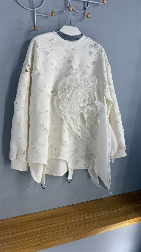 Уникальный свитшот из плотного 400 граммового хлопка с эффектной "медузой" ручной работы . Название "ЛУНА" призвано к сравнению ткани свитшота с причудливыми кратерами и вылканами на поверхности луны.